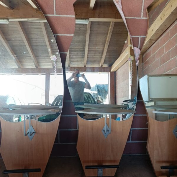 • Set 3 specchi da parete con mensola in legno usati C 165