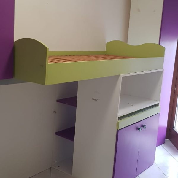 • Cameretta a ponte con letto soppalco e armadio viola/verde Misure: lunghezza 440 altezza 2,45 s 4504