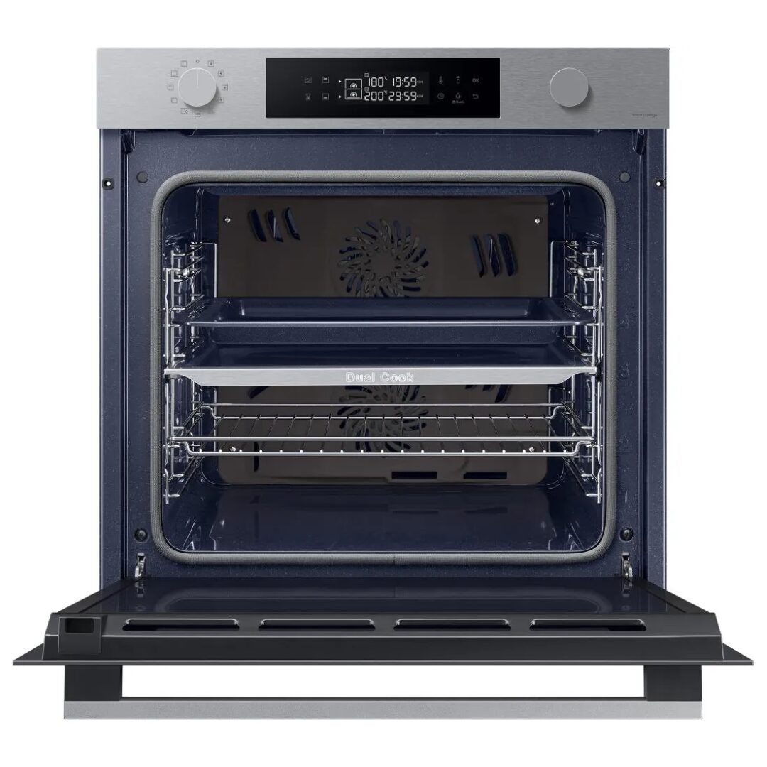 Dual Cook Scegli come cucinare pietanze diverse per risultati ottimali. Le zone di cottura superiore e inferiore di Dual Cook funzionano in modo indipendente o insieme. Vapore naturale Realizza portate deliziosamente succose, ma croccanti, senza bisogno di utensili speciali. Cottura perfettamente uniforme Air Sous Vide* Cucina i tuoi piatti in modo più uniforme, senza rischiare di cuocerli eccessivamente o farli seccare. Il sistema Air Sous Vide* rileva la temperatura di ogni cavità e la mantiene costante a lungo, in modo da ottenere una cottura perfetta, indipendentemente dal piano del forno, e pietanze morbide e succose. Più divertimento, meno stress SmartThings Cooking Rendi più divertente la tua esperienza in cucina. SmartThings Cooking* ti fa risparmiare tempo e cucinare non sarà più un problema. A seconda delle tue esigenze, ti consiglia ricette** personalizzate e crea un menu settimanale. Inoltre, ti guida nella preparazione dei pasti e nell’organizzazione della spesa***. Facile pulizia automatica Pulizia catalitica Risparmia tempo e fatica evitando di strofinare. Il sistema di pulizia catalitico* permette di tenere sempre pulito il forno in maniera semplicissima. Durante la cottura, il rivestimento catalitico collocato nella parte posteriore del forno assorbe il grasso di schizzi e gocce. In questo modo si pulisce automaticamente evitandoti ogni fatica o costosi detergenti. Cucina di più Capacità straordinaria (76 L) Cucina di più e più in grande grazie all’enorme capacità di 76 litri del forno. Avrai tante altre possibilità di cucinare. Puoi preparare insieme tante ricette diverse, ad esempio tutto il necessario per una festa. Oppure puoi cuocere cibi voluminosi, come un enorme tacchino per un pranzo di famiglia. Efficienza energetica A+ senza compromessi Classe di efficienza energetica A+ Rendi la tua casa più efficiente dal punto di vista energetico. La modalità Convezione eco ti garantisce l’eccezionale efficienza energetica* A+ anche quando utilizzi tutto il forno. Puoi quindi risparmiare denaro usando meno energia, pur godendo della convenienza di uno spazio molto ampio e flessibile. Inoltre, contribuisci a ridurre le emissioni nocive di CO2.