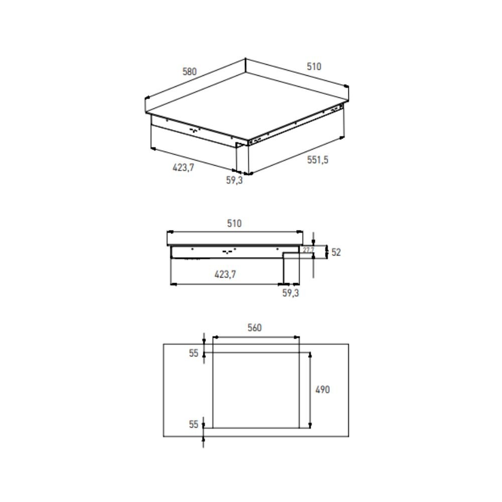 Dimensioni foro: L 56 x P 49 cm.