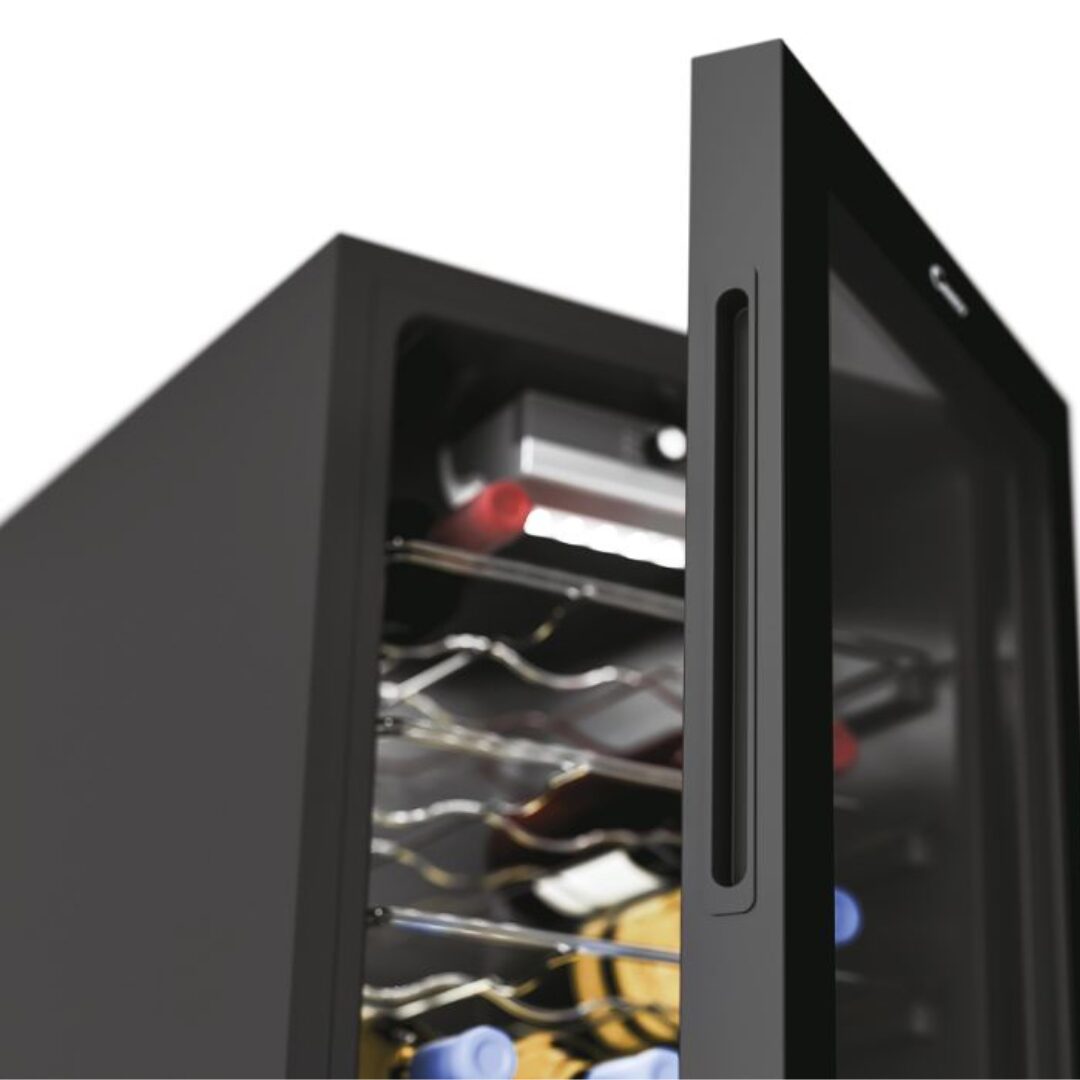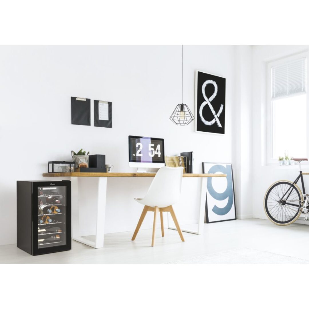 Candy CWC 021 M/NF. Posizionamento dell’apparecchio: Libera installazione, Colore struttura: Nero, Colore interno: Nero. Capacità bottiglie: 21 bottiglia/bottiglie, Tipo di prodotto: Cantinetta vino con compressore, Classe climatica: N-ST. Tipo di lampada: LED. Classe efficienza energetica: G, Consumo energetico annuo: 137 kWh, Scala di efficienza energetica: Da A a G. Larghezza: 400 mm, Profondità: 545 mm, Altezza: 700 mm