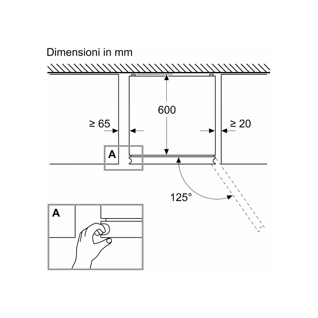 | Angolo di apertura della porta | 125° |