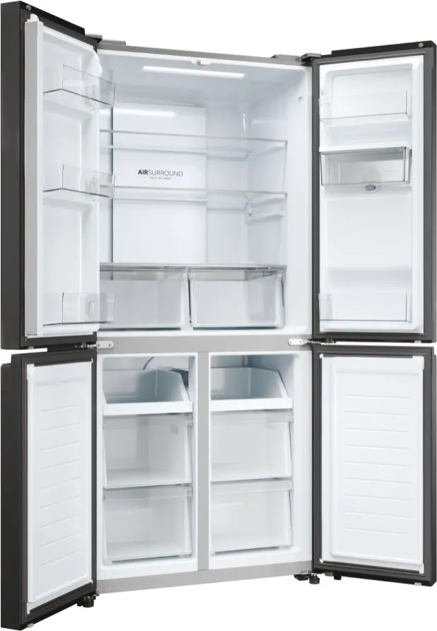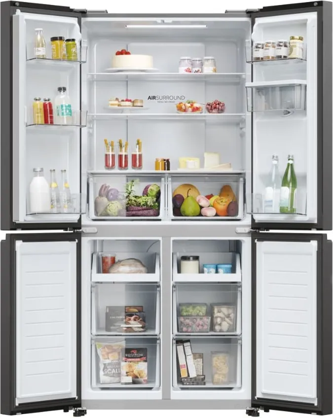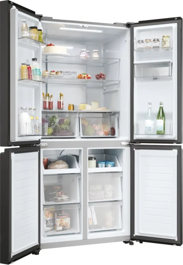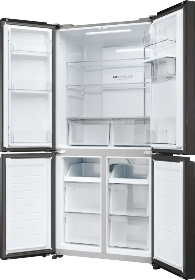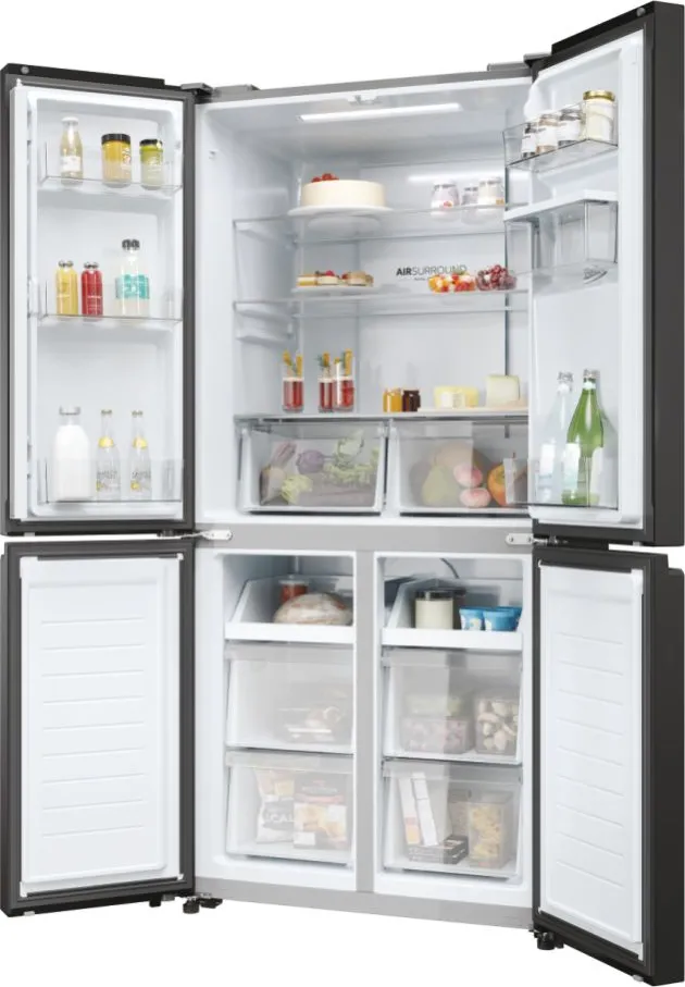 Haier Cube 83 Serie 3 HCR3818EWPT. Posizionamento dell’apparecchio: Libera installazione, Design del prodotto: Multi porta, Colore del prodotto: Antracite. Capacità netta totale: 463 L, Classe climatica: SN-T, Classe emissione rumore: B. Capacità netta frigorifero: 307 L, Tipo di lampada: LED. Capacità netta congelatore: 156 L, Posizione del congelatore: Posto in basso, Capacità di congelamento: 12 kg/24h. Classe efficienza energetica: E, Consumo energetico annuo: 290 kWh, Scala di efficienza energetica: Da A a G