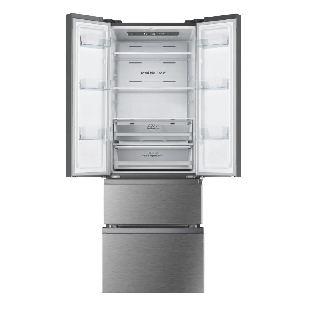 Hisense RF632N4BCE. Posizionamento dell’apparecchio: Libera installazione, Design del prodotto: Porta francese, Colore del prodotto: Stainless steel. Capacità netta totale: 485 L, Classe climatica: N-T, Classe emissione rumore: C. Capacità netta frigorifero: 336 L. Capacità netta congelatore: 149 L, Posizione del congelatore: Posto in basso, Capacità di congelamento: 11 kg/24h. Lunghezza cavo: 2 m