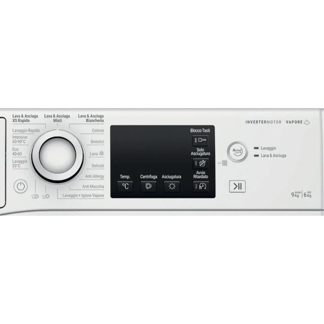 | Programmi di lavaggio | 20°C, Cotone, Delicati/Seta, Eco 40-60°C, Igiene/Allergy Care, Intenso, Risciacquo & centrifuga, Centrifuga/scarico, Stain care, Vapore, Sintetico, Lana |