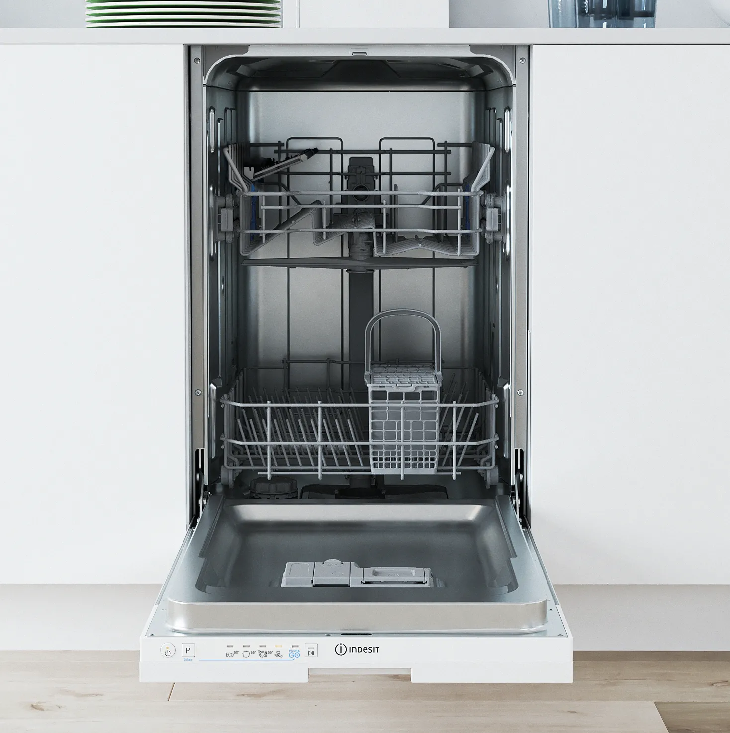 Lavastoviglie da Incasso Indesit 45 cm Slim 10 Coperti Incassata a Scomparsa Totale Push&Go – IN2IKE107