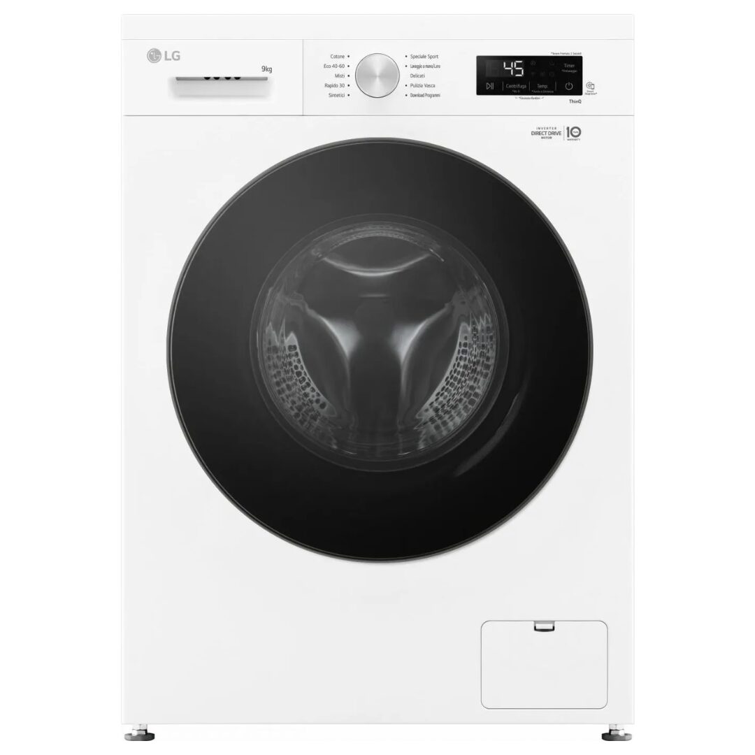 Collega la lavatrice al Wi-Fi di casa e scarica l’app LG ThinQ sul tuo smartphone per controllarla da remoto e monitorarne i consumi. Quando il ciclo di lavaggio è terminato, l’app ThinQ ti avviserà con una comoda notifica. Puoi scaricare anche nuovi programmi di lavaggio specifici in base al bucato che devi fare.”