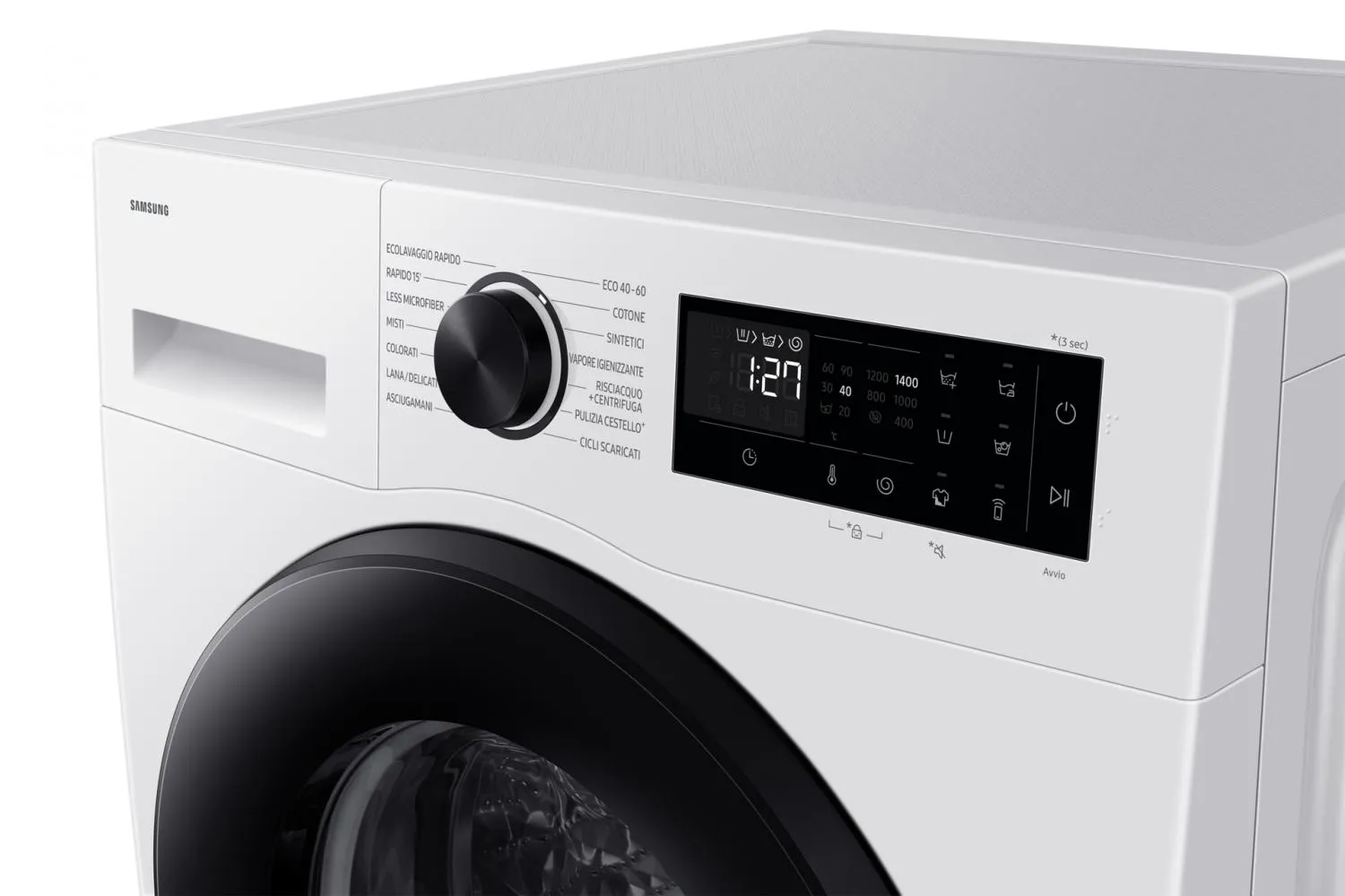 · Programmi speciali: Eco 40-60°C • Vapore Igienizzante • Rapido 15’ • Cotone • Colorati • Intenso a freddo • Risciacquo+Centrifuga • Sintetici • Asciugamani • Lana/Delicati • Eco Wash • Eco Pulizia Cestello Plus Smacchia Tutto Plus Super Speed (5 Kg in 39 min) • PROGRAMMI SCARICABILI CON SMARTTHINGS 4 Biancheria di Letto • Outdoor • Scarico/Centrifuga • Capi Sportivi • Giornata Nuvolosa • Camice • Jeans • Baby Care •