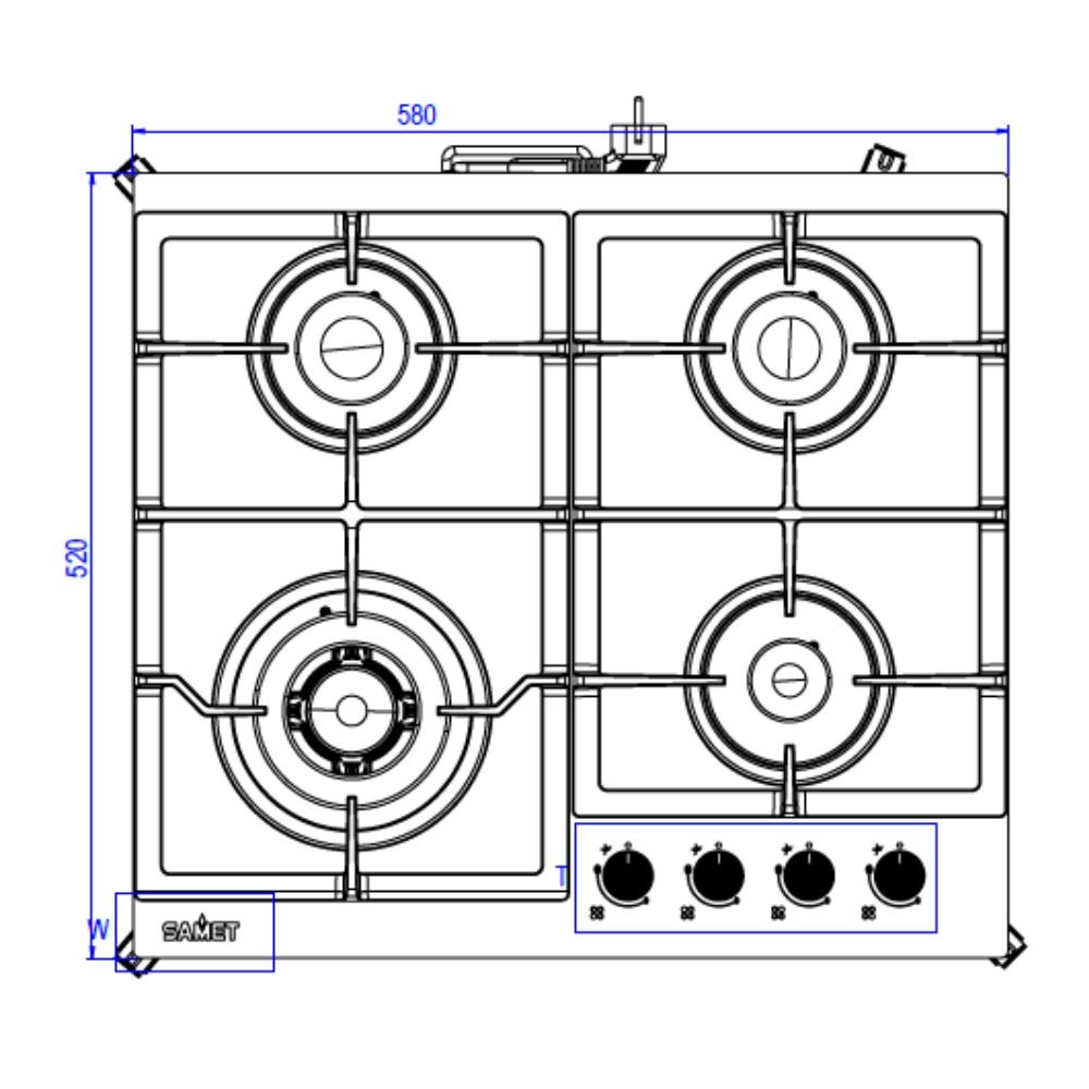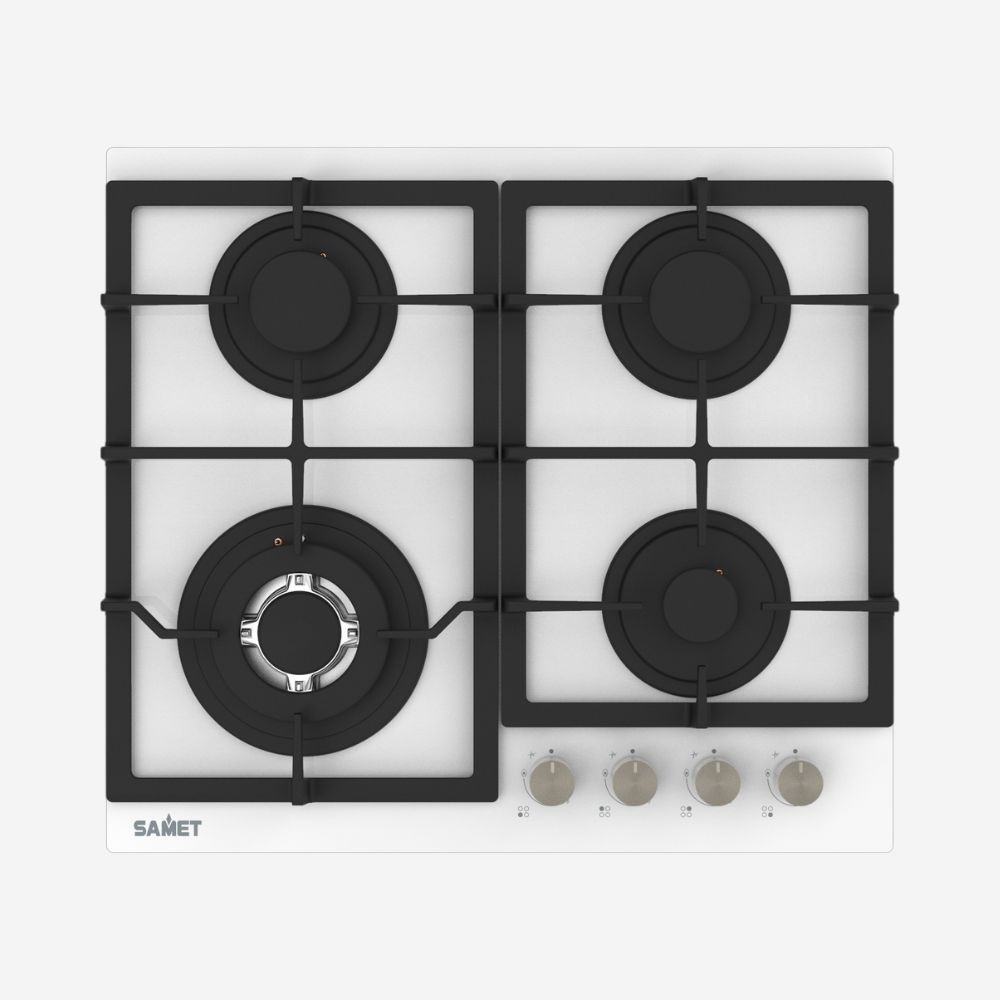 Piano cottura Samet Dafne 60 a gas da incasso 4 fuochi 60 cm in vetro bianco