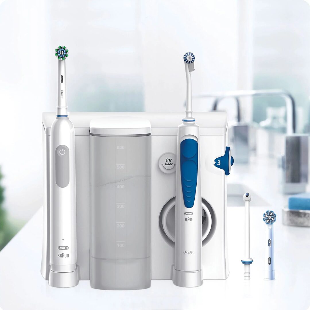 Oral-B Idropulsore Health Center. Utilizzo: Adulto, Tipo di spazzolino da denti: Spazzolino rotante-oscillante, Colore del prodotto: Blu, Bianco. Peso: 1,2 kg, Larghezza imballo: 171 mm, Profondità imballo: 233 mm. Numero di spazzolini inclusi: 1 pz, Numero di testine incluse: 1 pz. Quantità per cartone principale: 3 pz