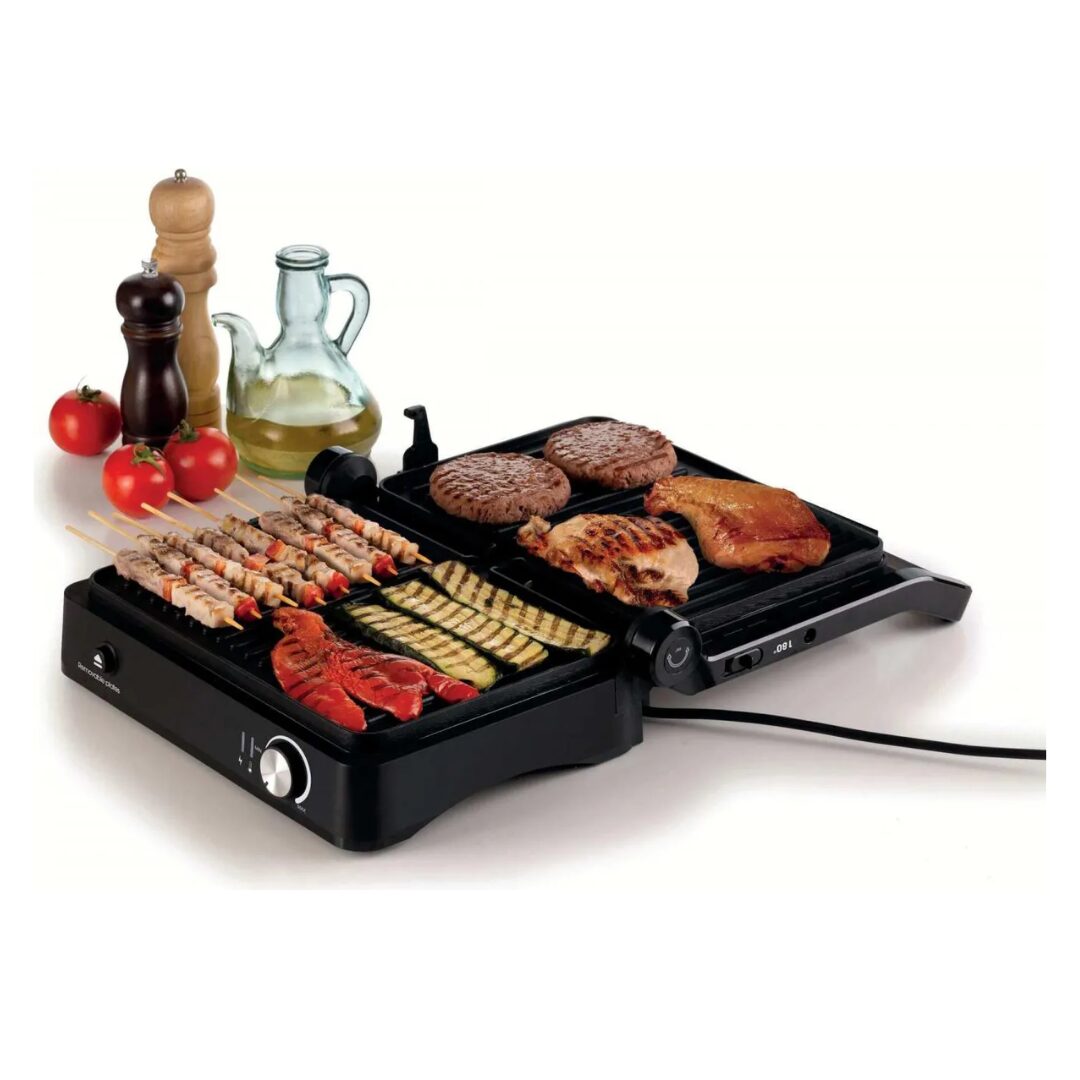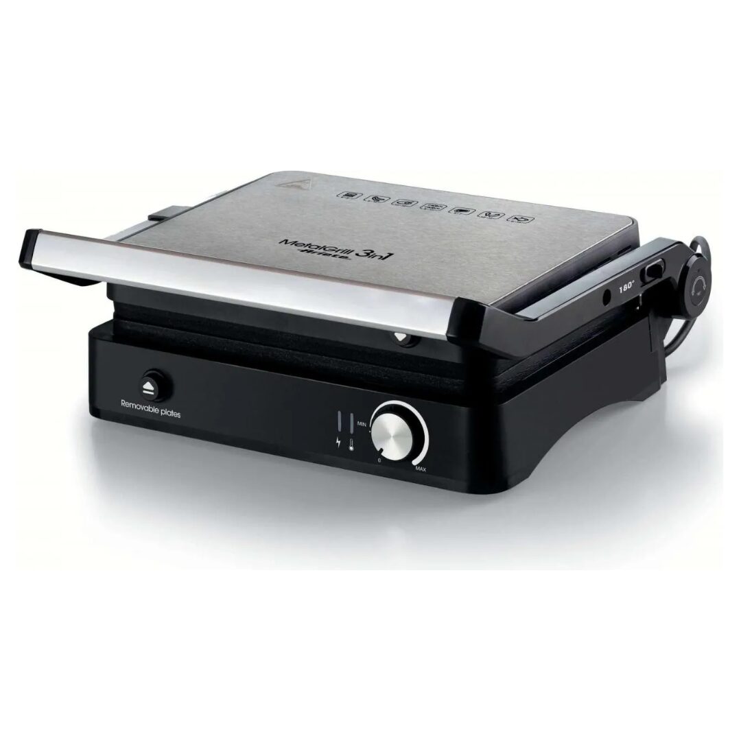Per chi ama le grigliate, con MetalGrill 3in1 metti in gioco la tua creatività, con poco ingombro e senza fumo e odori fastidiosi!I suoi 2000 watt e le sue 3 modalità di cottura a contatto, a fornetto e a libro aperto a 180° permettono di grigliare, cuocere e riscaldare professionalmente tanti tipi di pietanze: pizza, verdure, panini, spiedini e hamburger. Per le serate fra amici, la cottura a libro aperto a 180°, sulle 2 piastre antiaderenti estraibili, permette di preparare grandi quantità di carne e verdure pronte in pochi minuti. Grazie alla vaschetta raccogli grasso e alle piastre estraibili e lavabili, la pulizia di MetalGrill è davvero semplice e veloce. Con la griglia elettrica MetalGrill 3in1 puoi preparare comodamente una ricca grigliata ogni volta che vuoi e riporla in qualsiasi angolo della tua cucina grazie alle sue dimensioni compatte