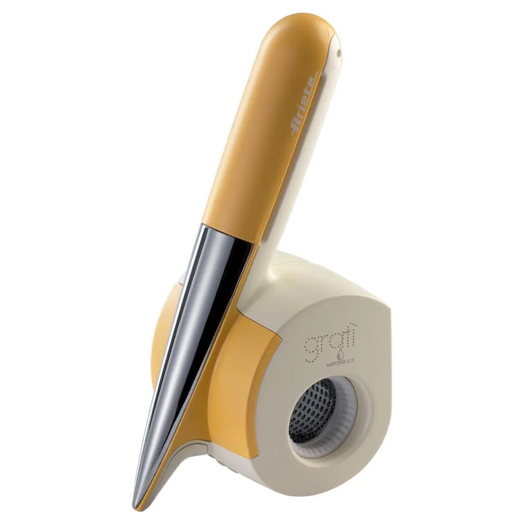 Gratì Waterproof è la nuova grattugia elettrica senza fili di Ariete, facile da usare e maneggevole, dotata di batteria al litio che permette di grattugiare fino a 2Kg di formaggio con una sola ricarica. Gratì Waterproof è la prima grattugia elettrica interamente lavabile sotto l’acqua corrente, che non necessita di essere smontata. Con i due diversi rulli in dotazione, grattugia e scaglie, è possibile grattugiare formaggio, frutta secca, cioccolato e pane secco per preparare un gustoso carpaccio con scaglie di grana o una buonissima torta con scaglie di cioccolato!