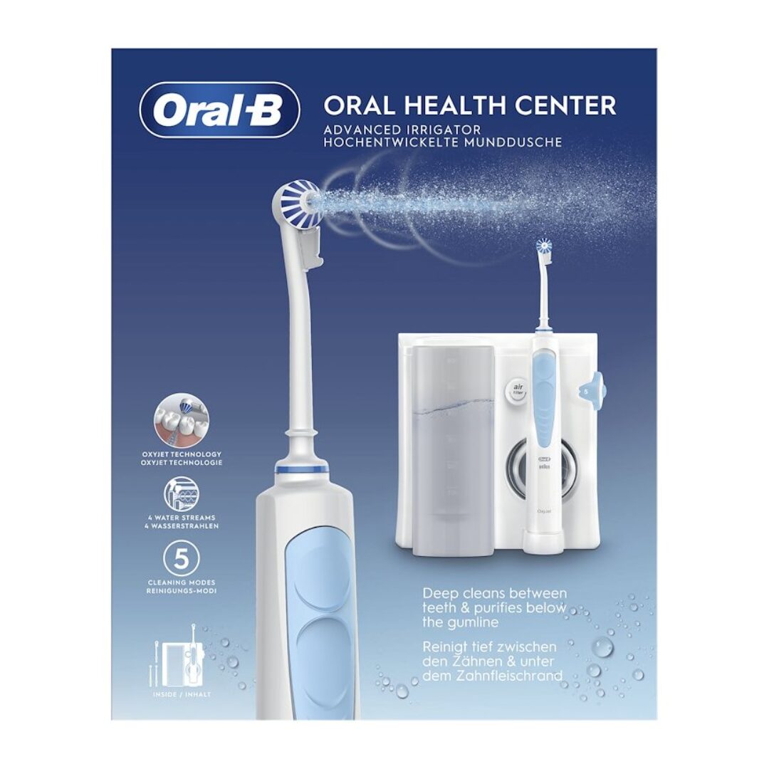 Oral-B Idropulsore Health Center Avanzato con 2 Beccucci Oxyjet, 2 Beccucci Con Getto D?acqua. 1 Idropulsore. Peso: 907,6 g. Numero di testine: 4 testina/e, Larghezza imballo: 188 mm, Profondità imballo: 171 mm
