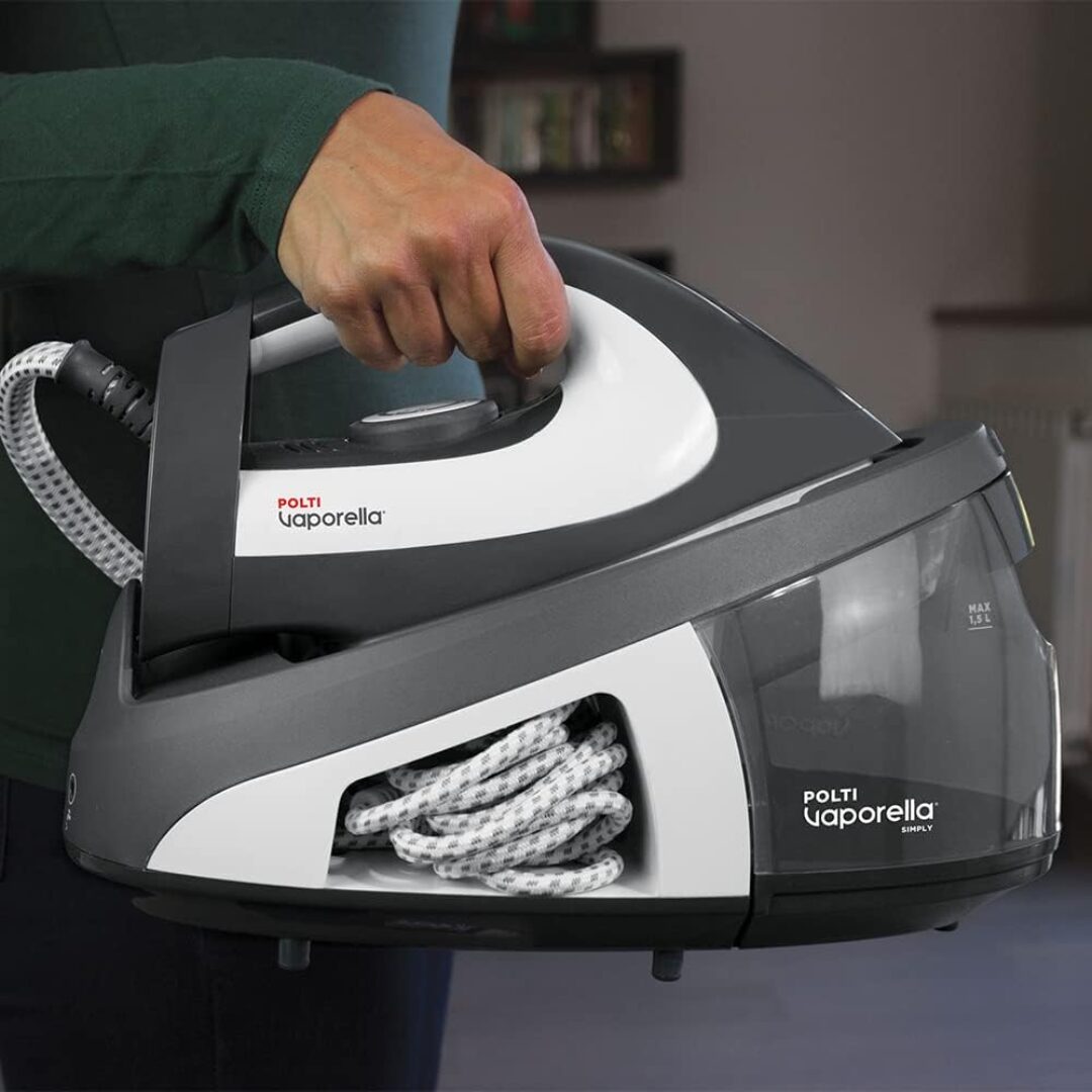 Vaporella Simply è attenta ai dettagli: chiusura blocca ferro per facilitarne il trasporto e vano sotto la macchina per sistemare sia il tubo dell’acqua che il cavo di alimentazione, così puoi riporre la macchina in tutta comodità!