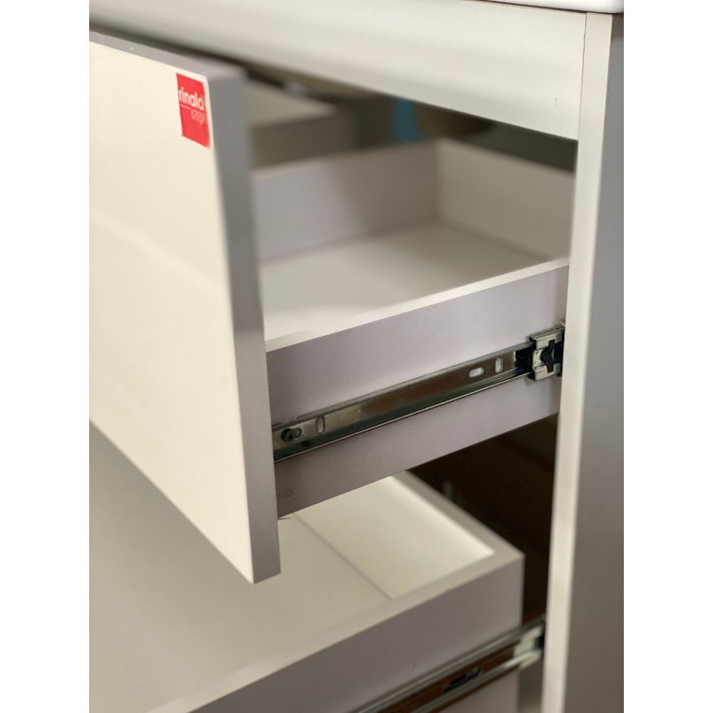 Mobiletto bagno sospeso bianco con lavabo in ceramica e specchio. Due cassetti pratici per riporre oggetti. Design moderno e funzionale p...