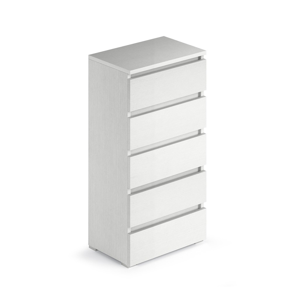 Cassettiera bianca con 5 cassetti per riporre i tuoi vestiti e accessori in camera. Pratica e compatta, perfetta per spazi piccoli.