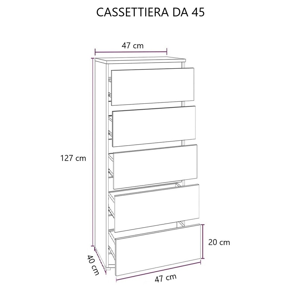 Cassettiera bianco frassinato 5 cassetti 47x40x127H