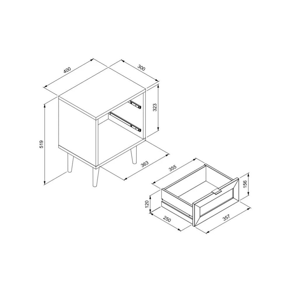Comodino Vienna61A 2 cassetti nero con frontali effetto vimini