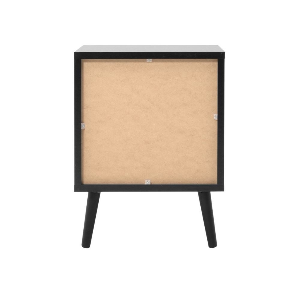 Comodino nero con 2 cassetti e frontali in effetto vimini. Pratico e elegante per la camera, combina stile rustico e design moderno con u...