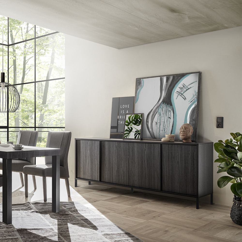 Madia nera con 4 ante in legno, perfetta per organizzare e arredare il tuo soggiorno con stile italiano e praticità
