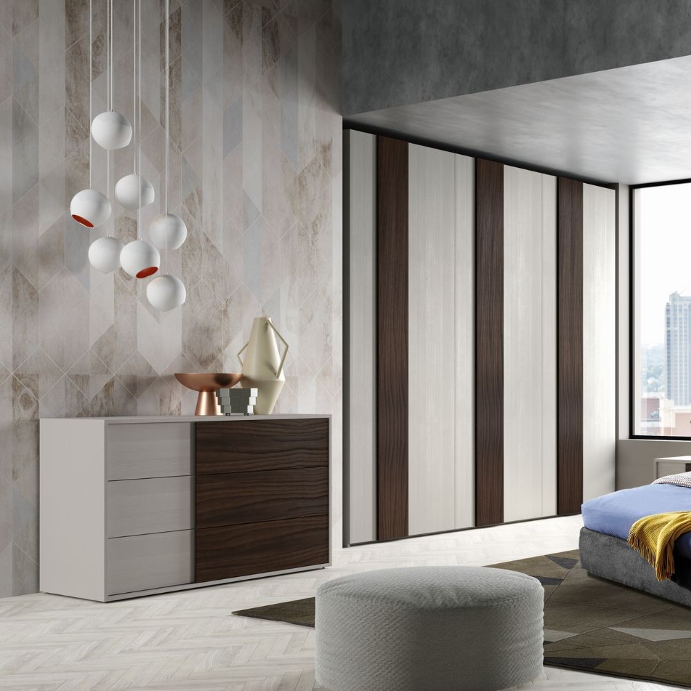 Camera da letto Cecilia grigio frassinato con inserti noce scuro