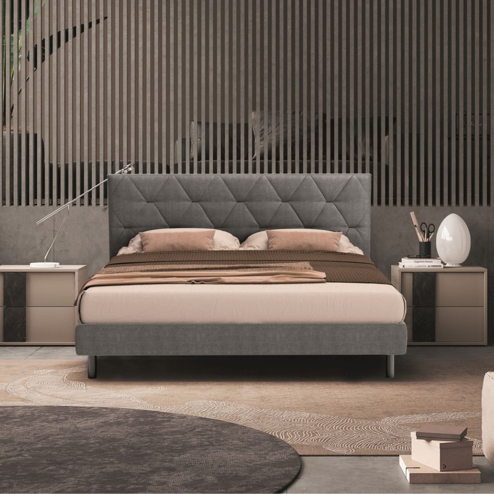 Letto matrimoniale contenitore basso in tessuto grigio Cody.