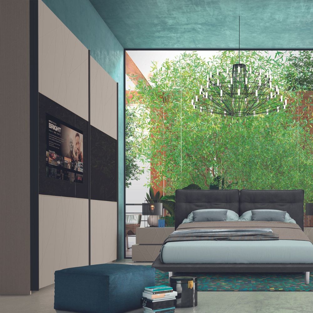 Armadio 2 ante scorrevoli con specchi grigio fumè e sistema Soft closing. Cassa canapa e frontali Shanghai.