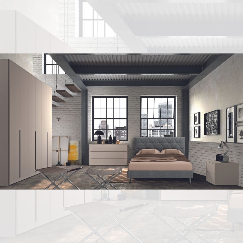 Letto matrimoniale contenitore basso in tessuto grigio scuro Cody.