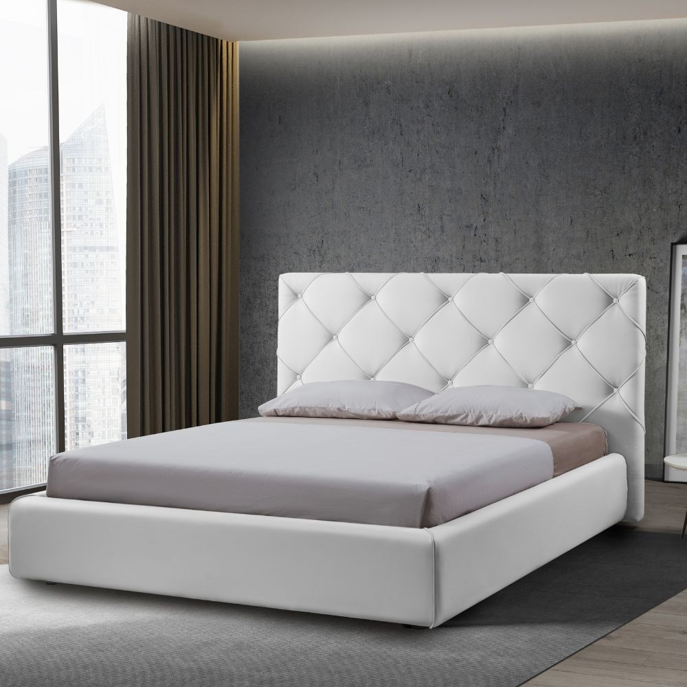 Letto contenitore testiera capitonnè ecopelle bianco Kassandra