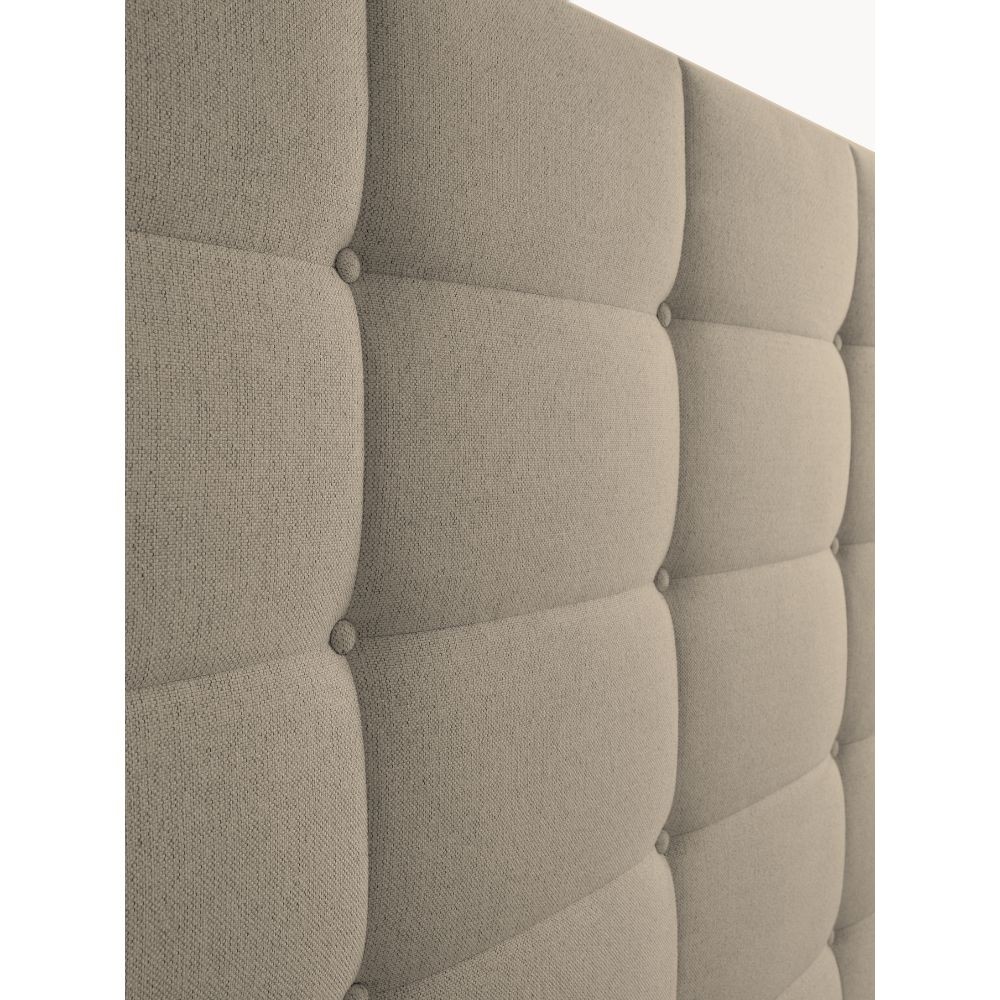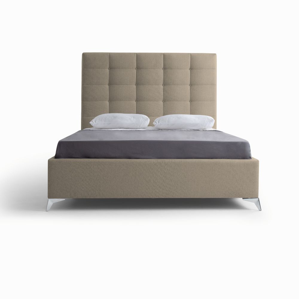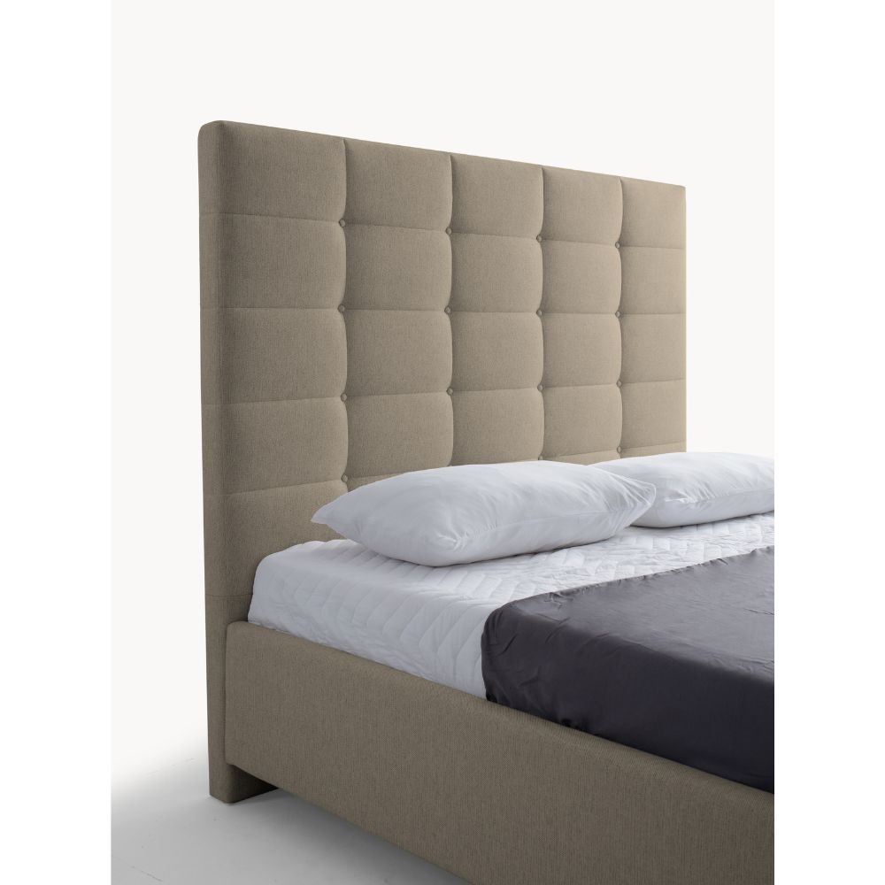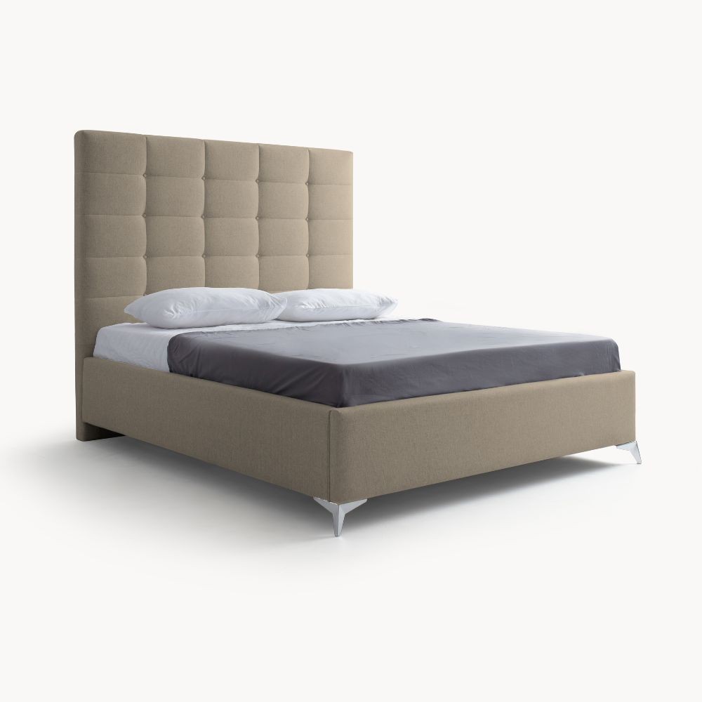 Letto matrimoniale Napoli Grande imbottito con contenitore in tessuto barrel 09 cappuccino con bottoni