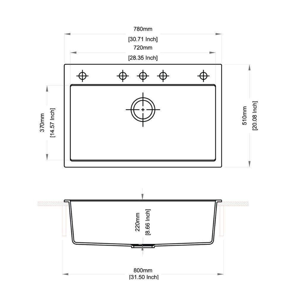 Dimensioni foro incasso: 760×490 mm.