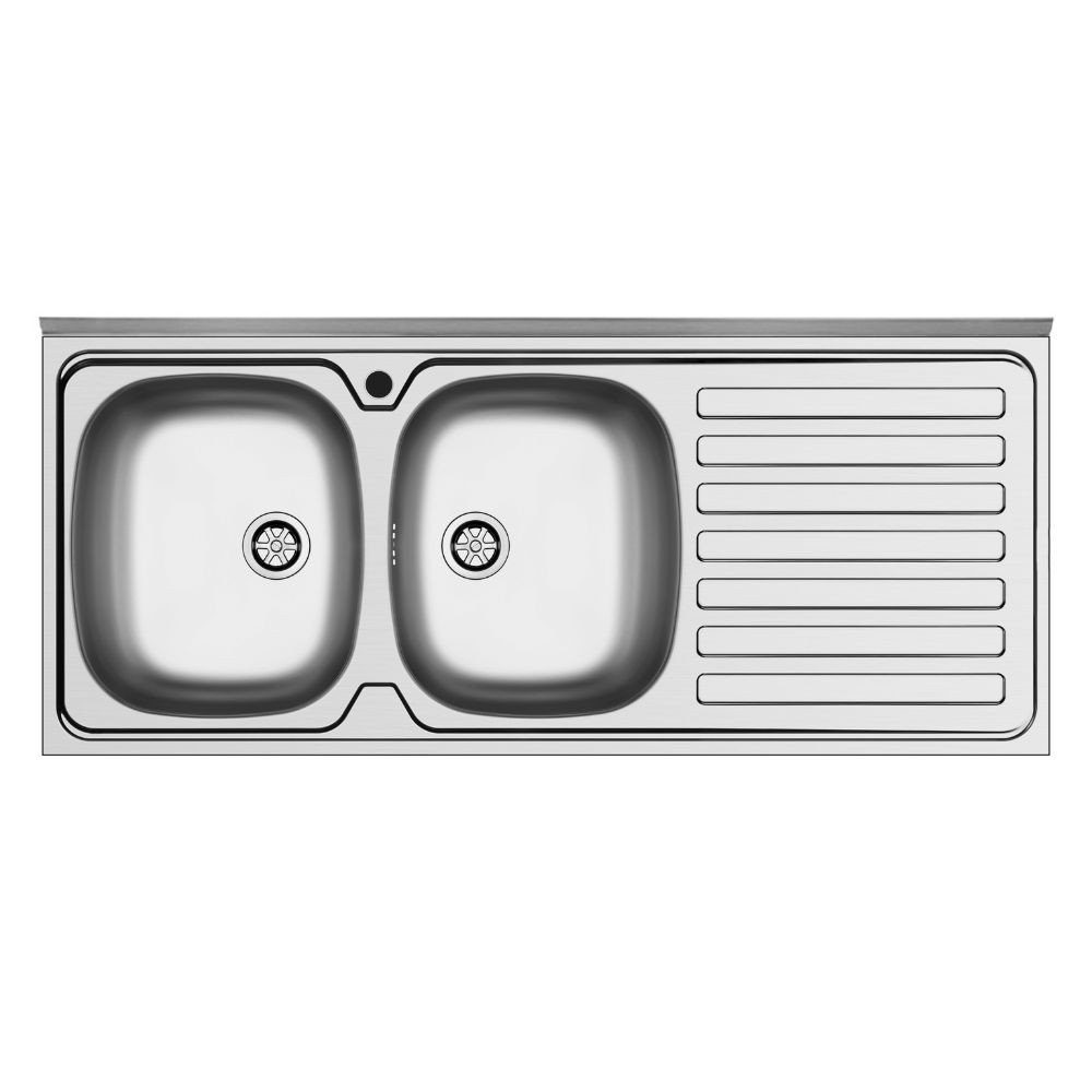 Lavello da appoggio Mediterraneo120 con 2 vasche sinistre e gocciolatoio destro con alzatina inox