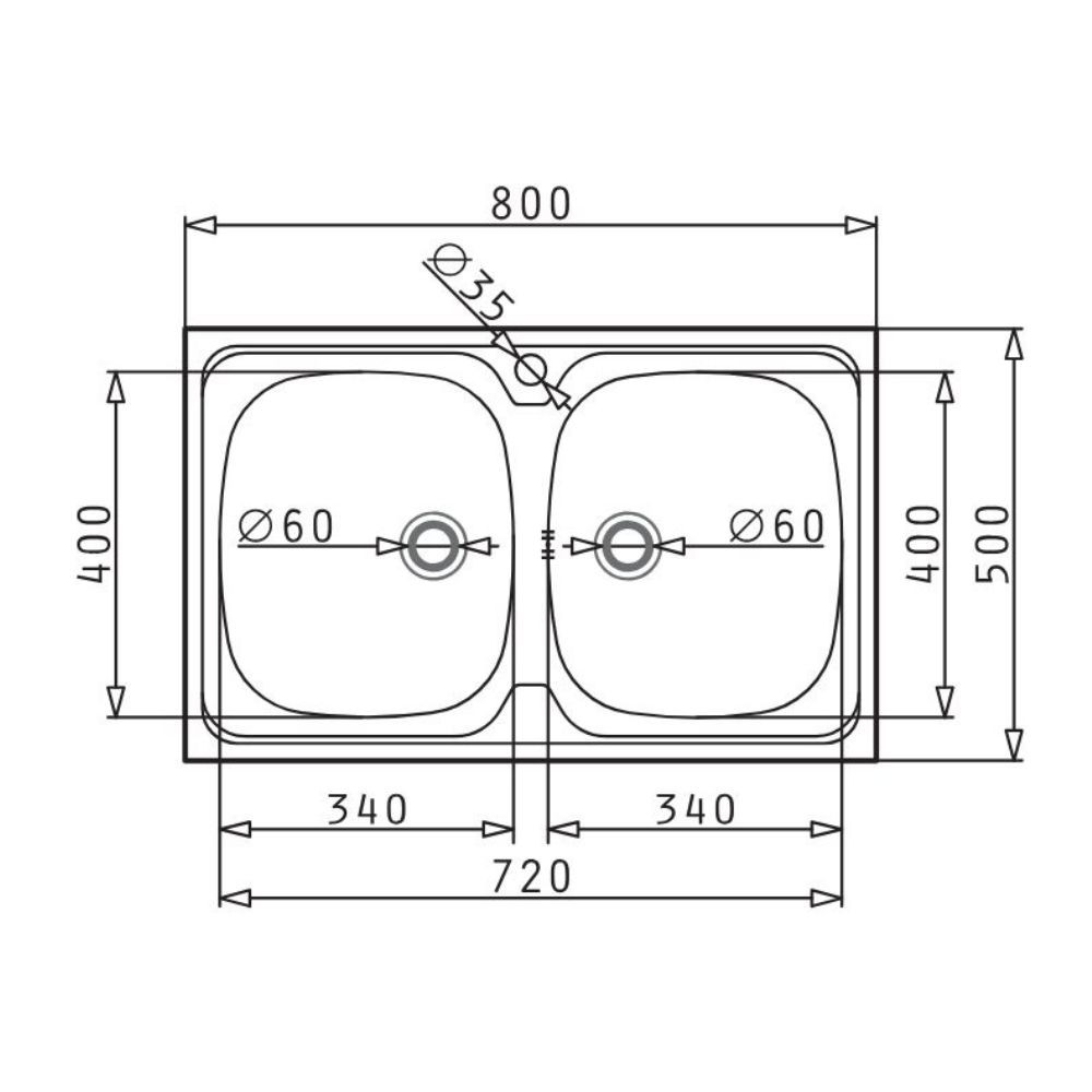 Lavello da appoggio Mediterraneo802 con 2 vasche e alzatina inox
