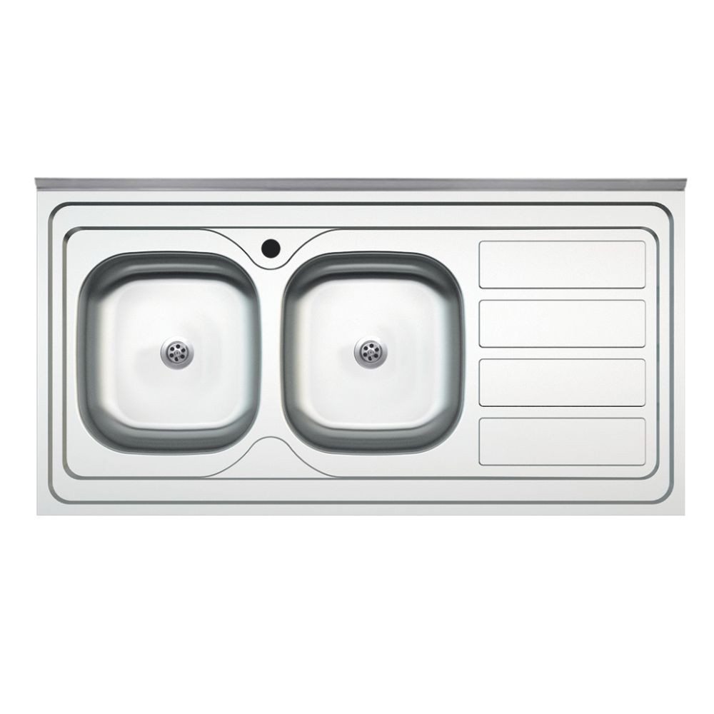 Lavello da appoggio SA46 due vasche con gocciolatoio destro 120x60cm. inox