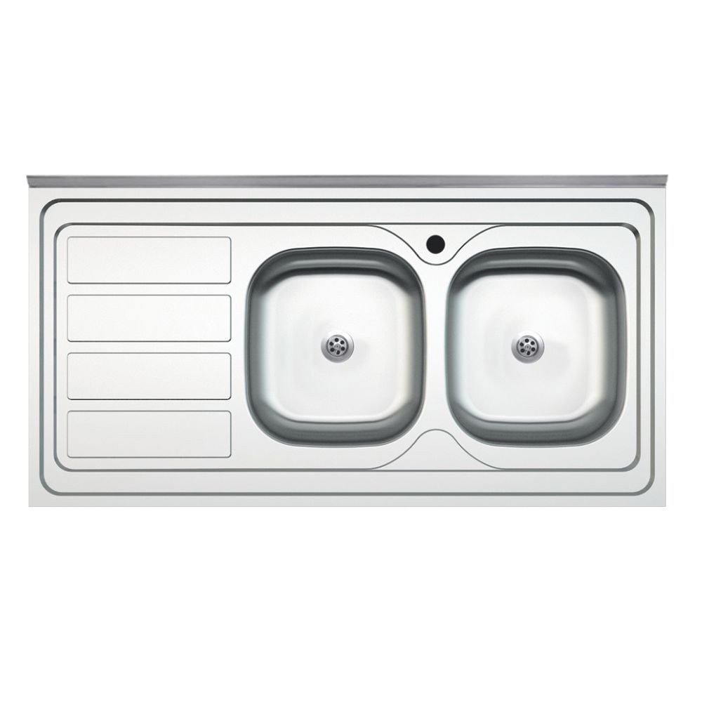 Lavello da appoggio SA46 due vasche con gocciolatoio sinistro 120x60cm. inox