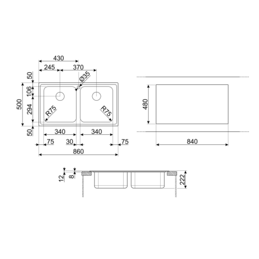 Lavello Smeg LP8622 inox 2 vasche 86×50 cm