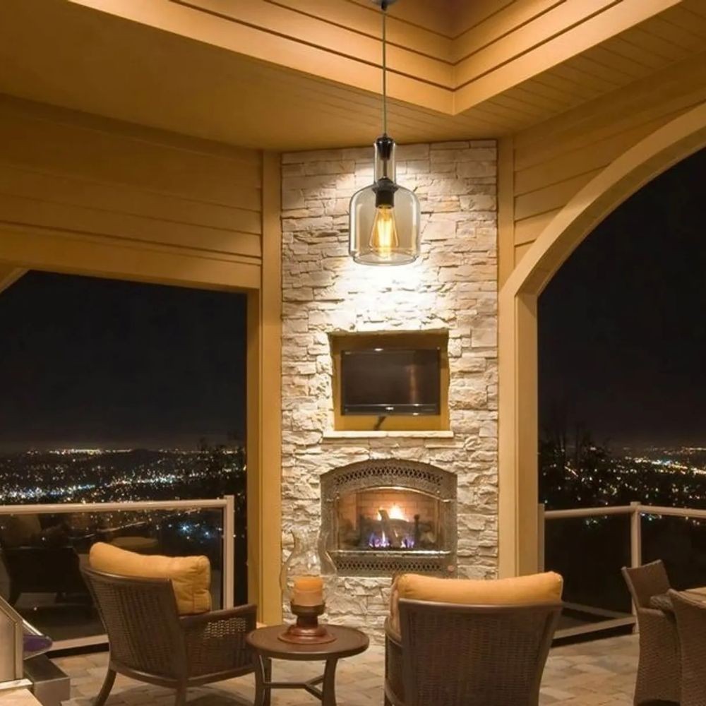 Lampada a sospensione in vetro fumè per cucina e soggiorno. Design moderno con diffusore trasparente, facile da pulire e da mantenere nel...