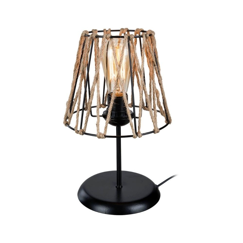 Lampada da tavolo con paralume in corda naturale, struttura in metallo nero. Perfetta per illuminare scrivania e comodini con stile rusti...