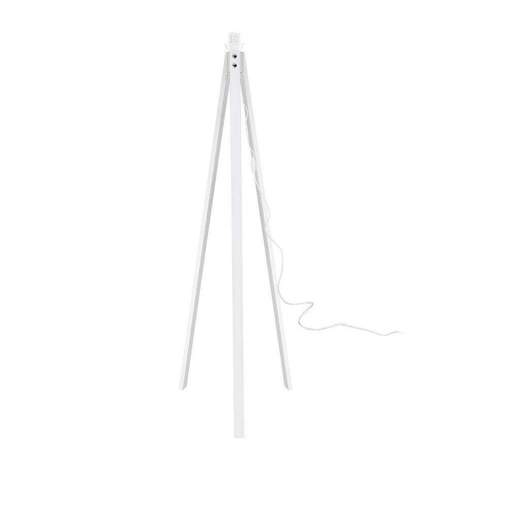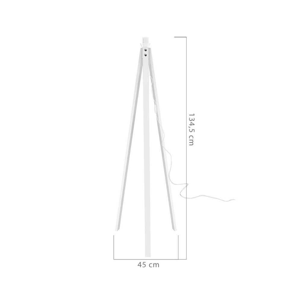 Lampada da terra con treppiede in legno bianco e paralume nero in tessuto. Perfetta per illuminare angoli del soggiorno con stile moderno...