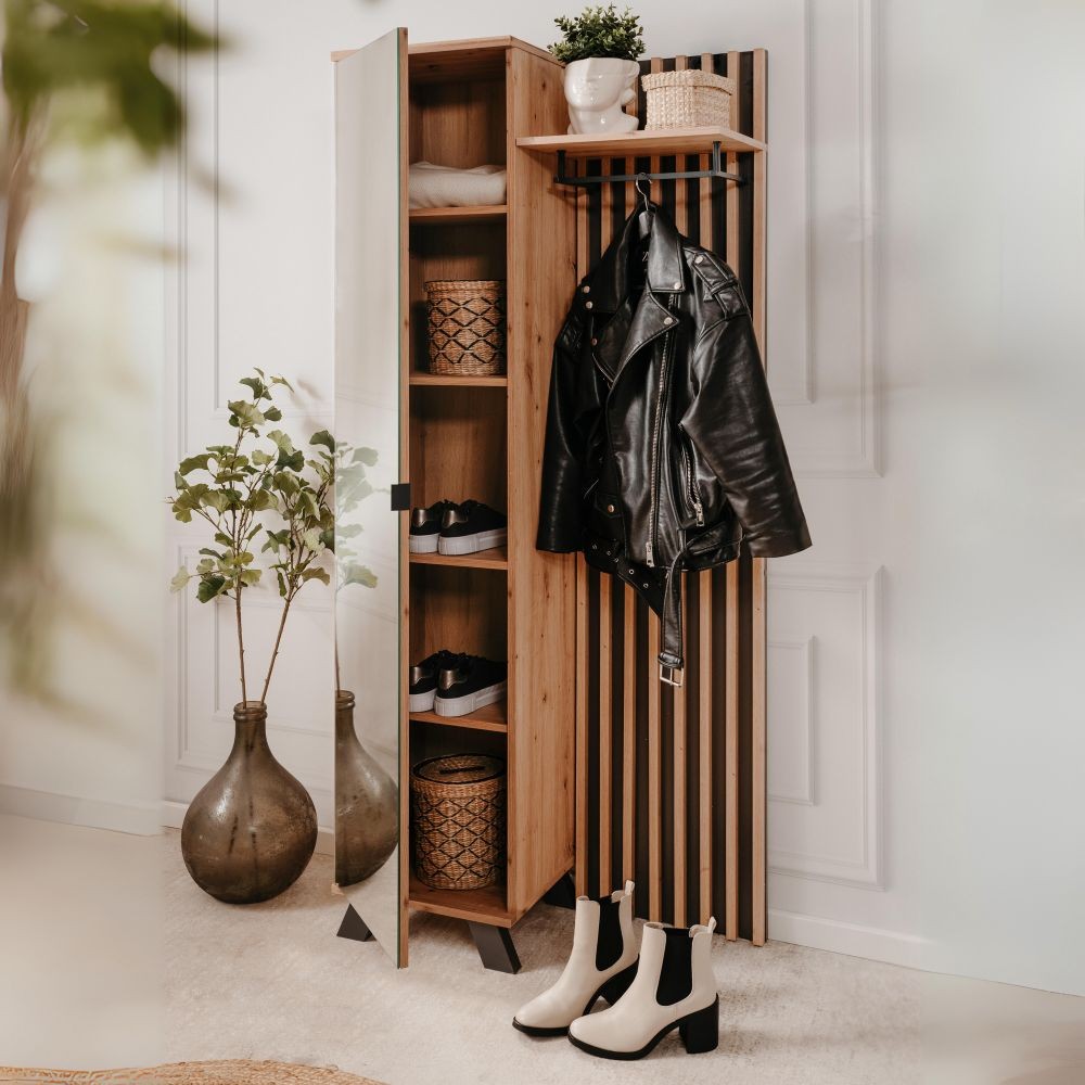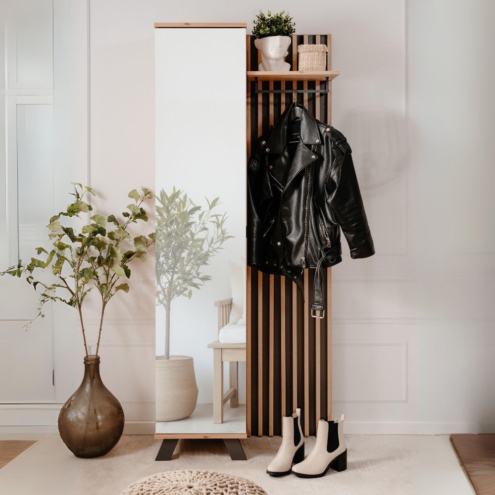 Mobiletto ingresso quercia e antracite con specchio, ripiani e appendiabiti. Perfetto per organizzare e sistemare tutto quello che serve ...