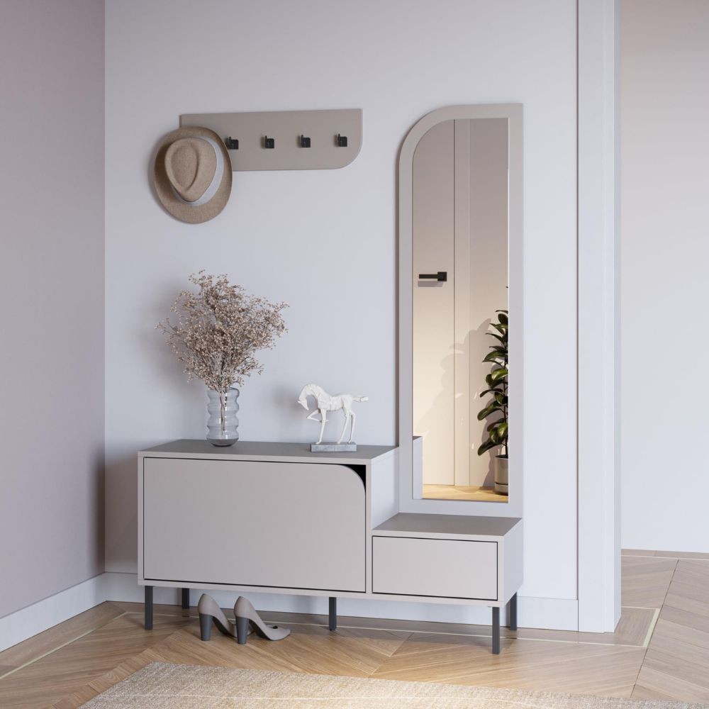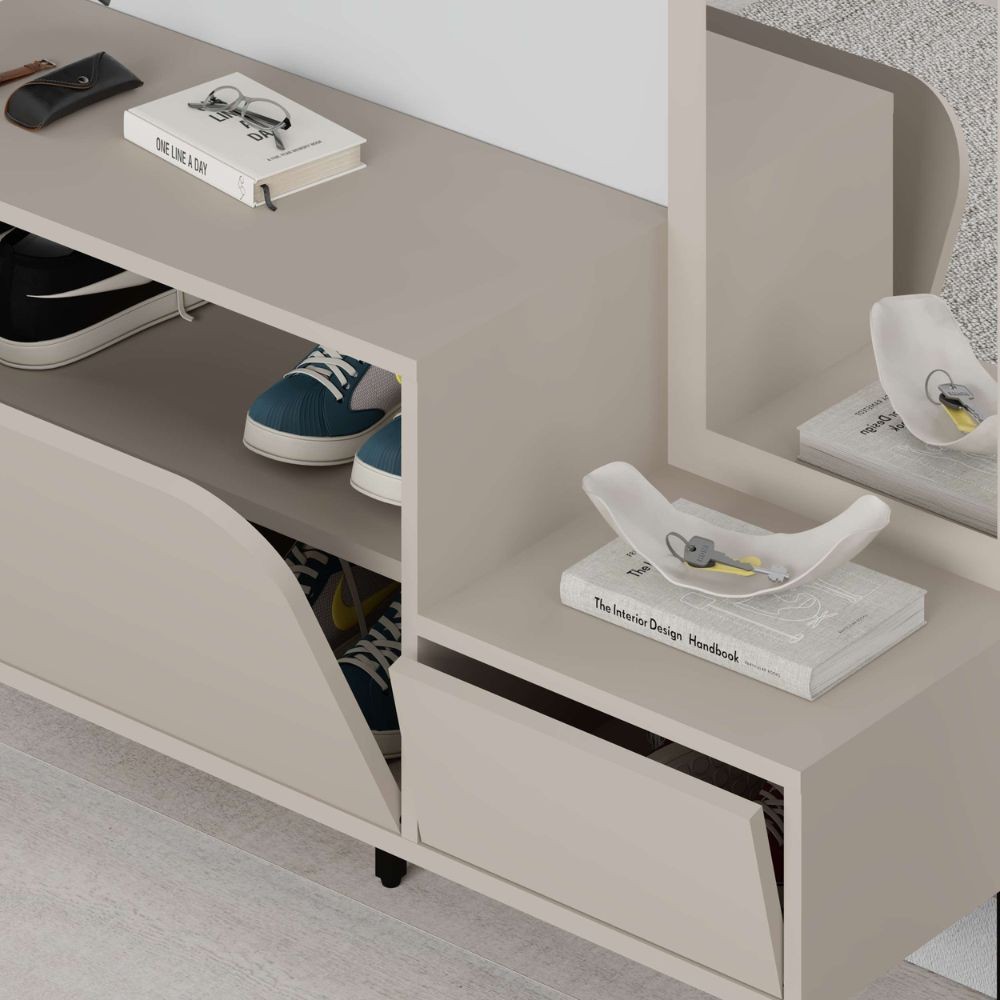 Mobile ingresso Mila con scarpiera ganci appendi abito e specchio colore cashmere