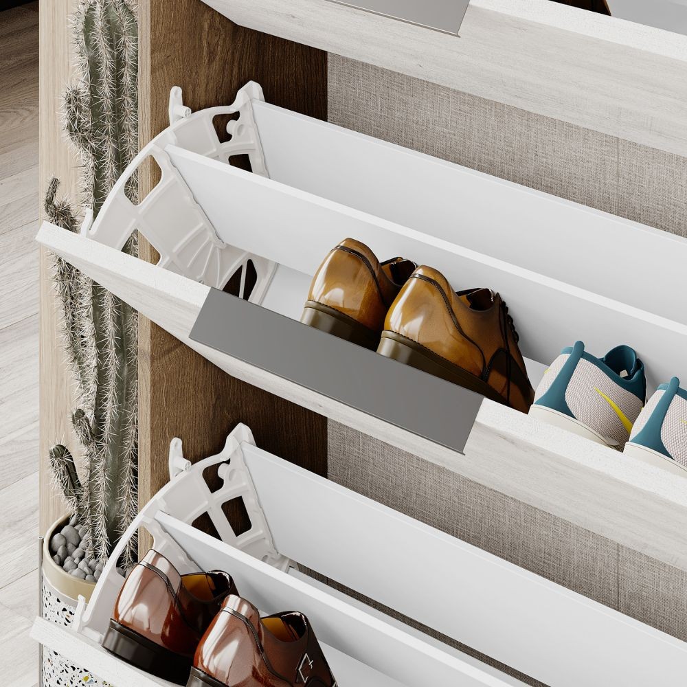 Scarpiera Kaju 3 ante a ribalta bianco e struttura noce