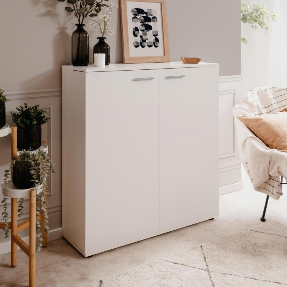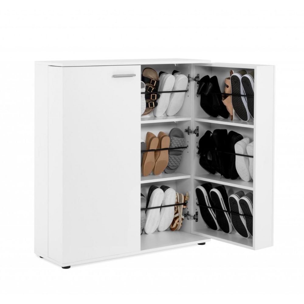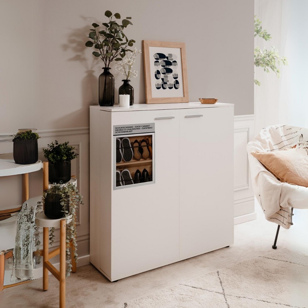 Scarpiera bianca con 2 ante e 8 ripiani per organizzare fino a 24 paia di scarpe. Robusta struttura in truciolato rivestito, perfetta per...