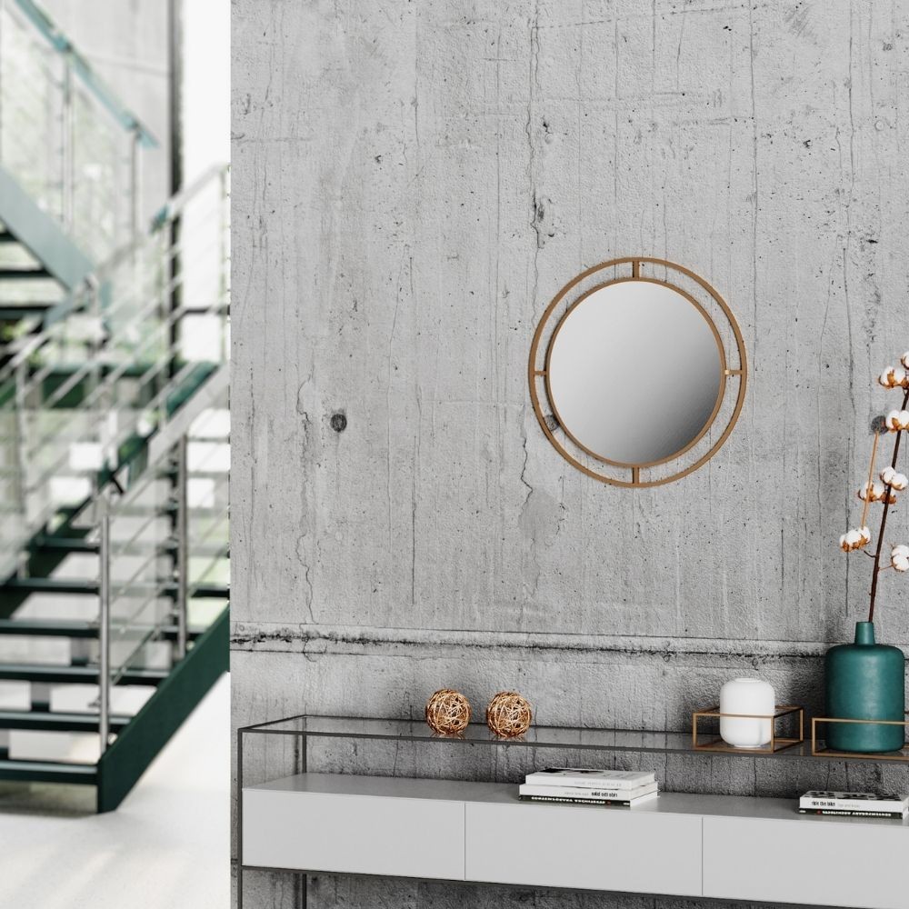 Specchio murale in metallo color oro con doppia cornice. Perfetto per illuminare e ampliare gli spazi di casa con stile moderno ed elegante.