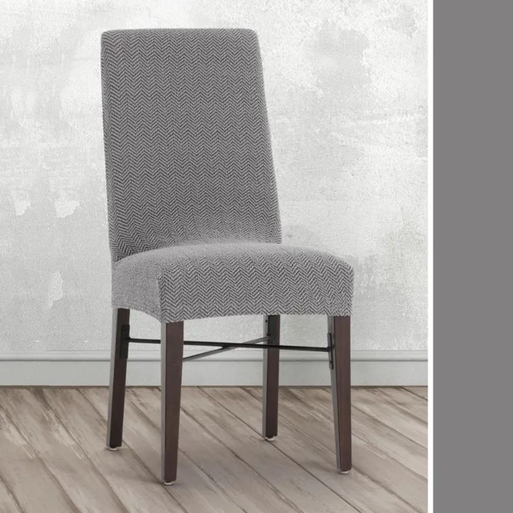 Coprisedia grigio elastico e resistente che si adatta a sedie diverse. Tessuto morbido lavabile, perfetto per proteggere e rinnovare l'ar...