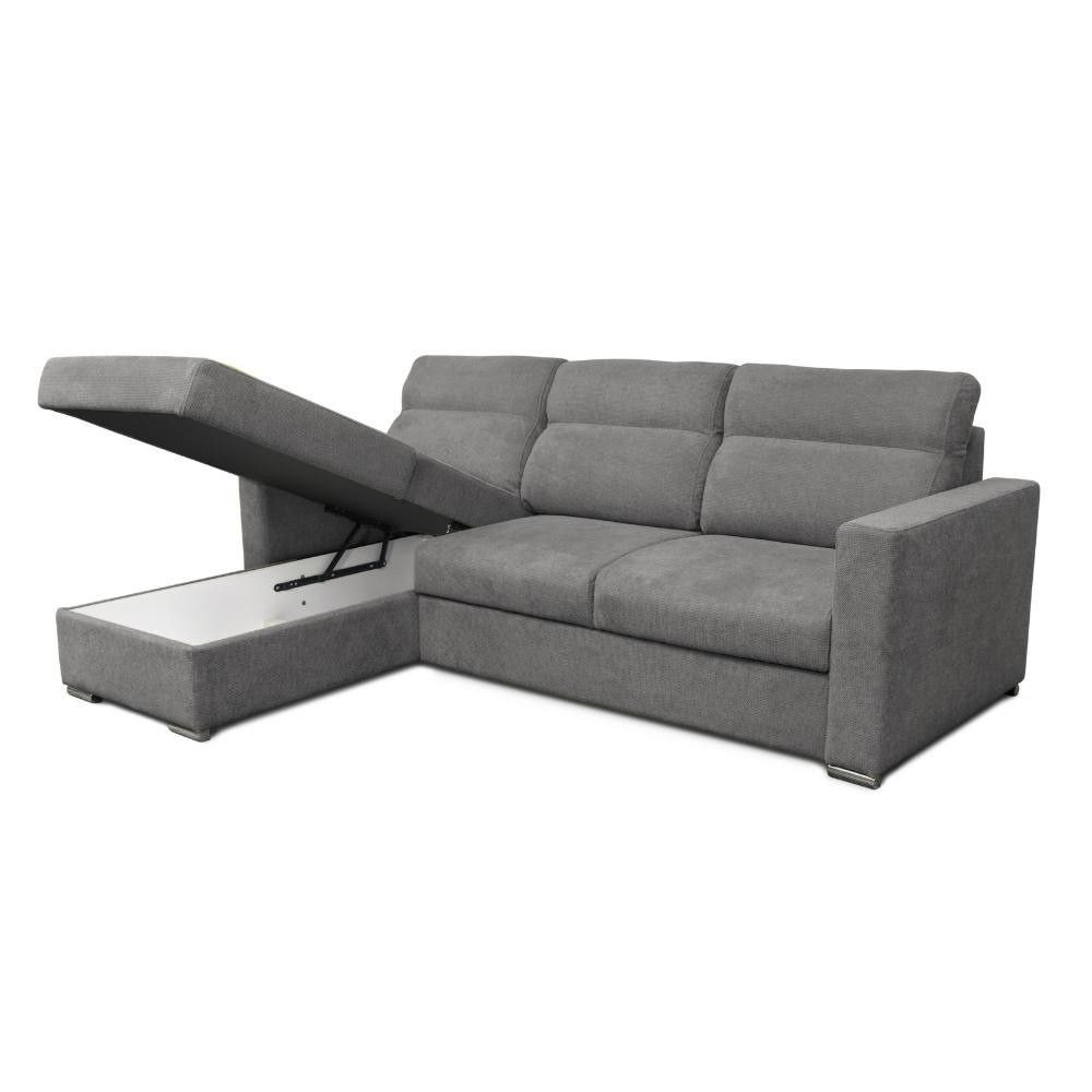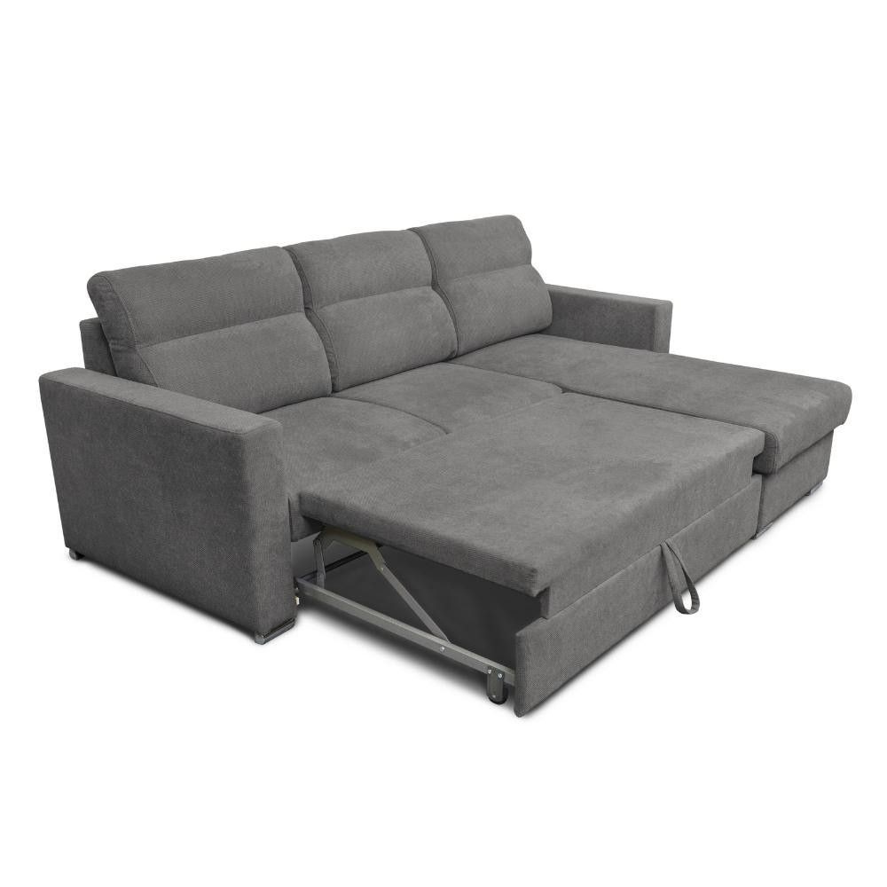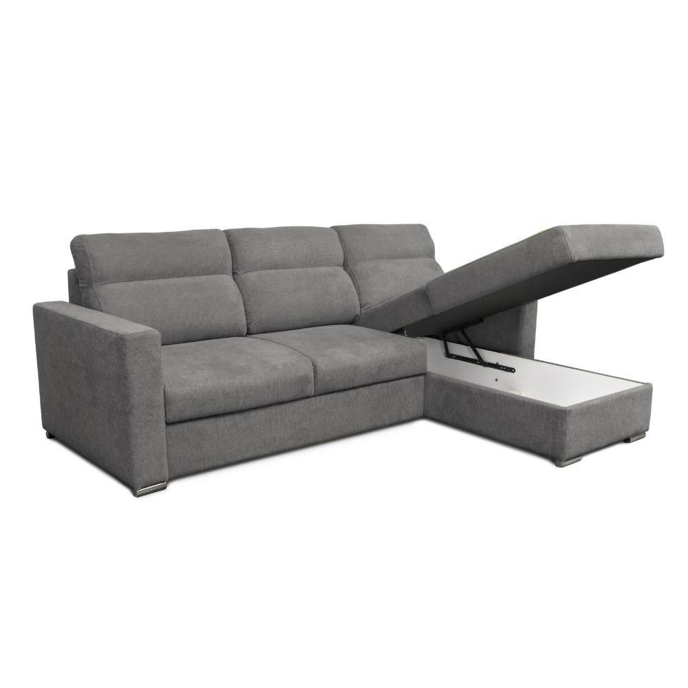 Divano angolare grigio con penisola reversibile e letto estraibile, rivestimento facile da pulire. Perfetto per chi ha poco spazio ma vuo...