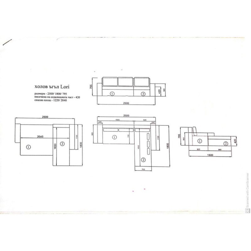 Dimensioni: L 250 X H 79 X P 180 cm.