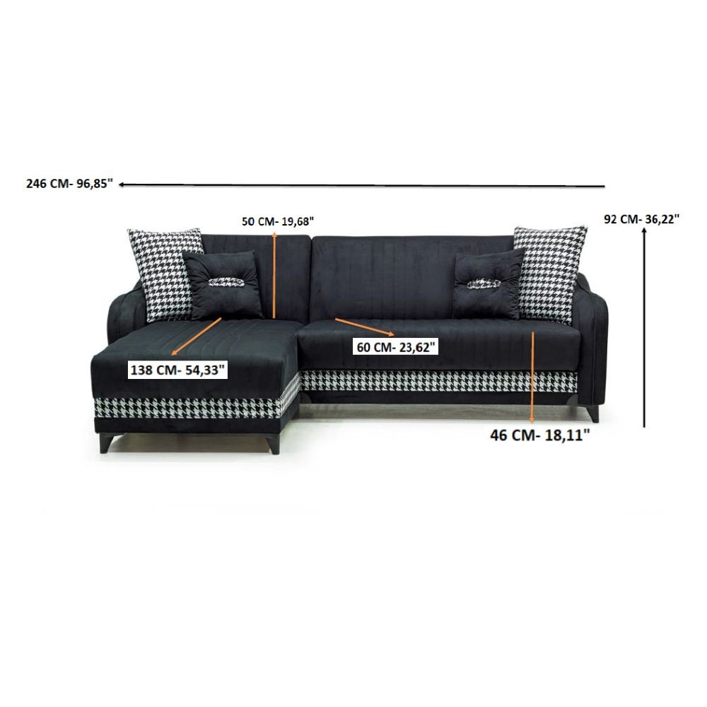 Divano con penisola contenitore reversibile Laos grigio soft 22 246x138x92 H