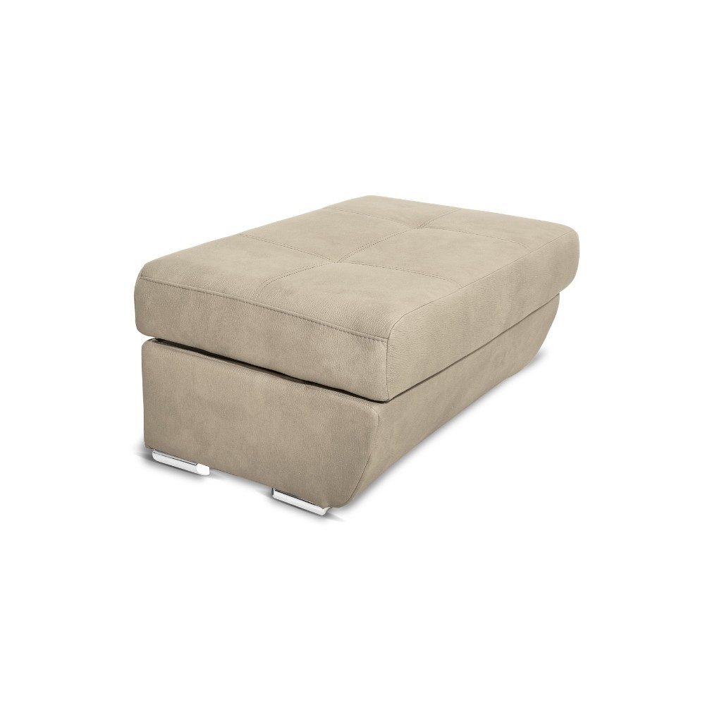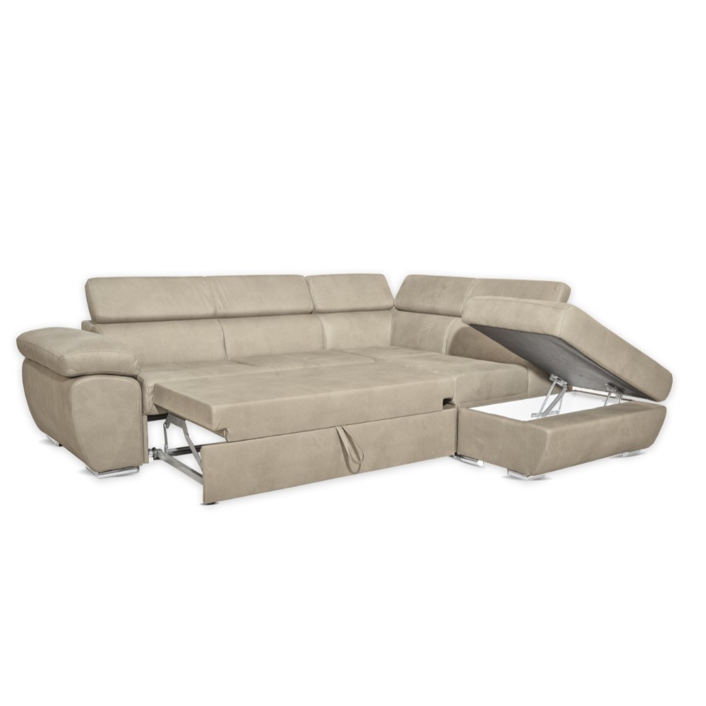 Divano angolare con letto estraibile e pouff contenitore, ideale per living moderni e spazi ampi. Tessuto resistente color cappuccino, po...