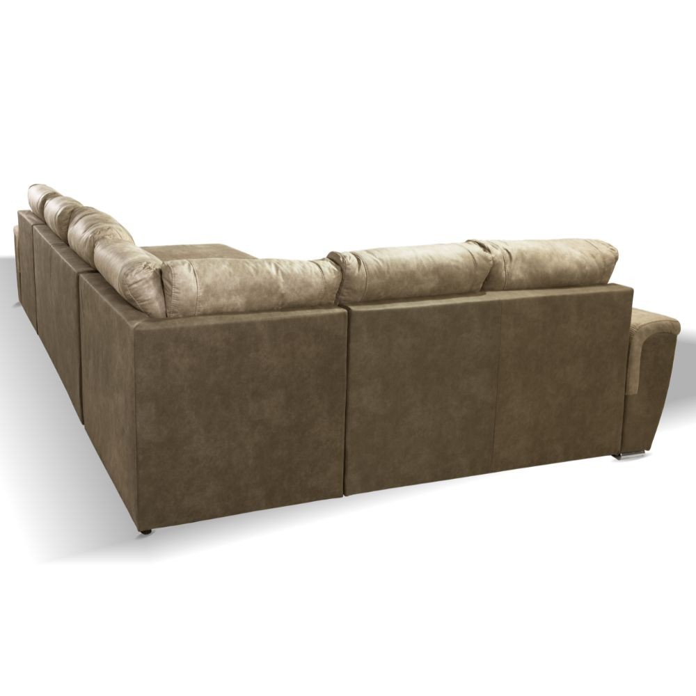 Divano angolare modulare in nabuk bicolore taupe con letto estraibile e 2 spazi contenitori. Perfetto per vivere comodamente e organizzar...